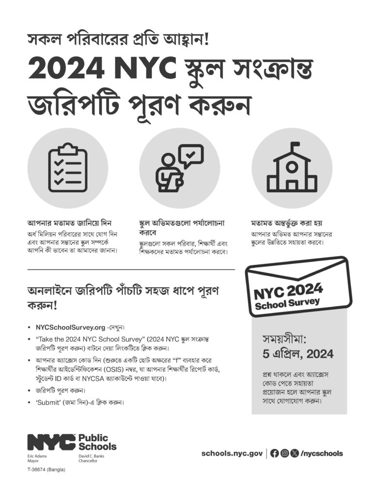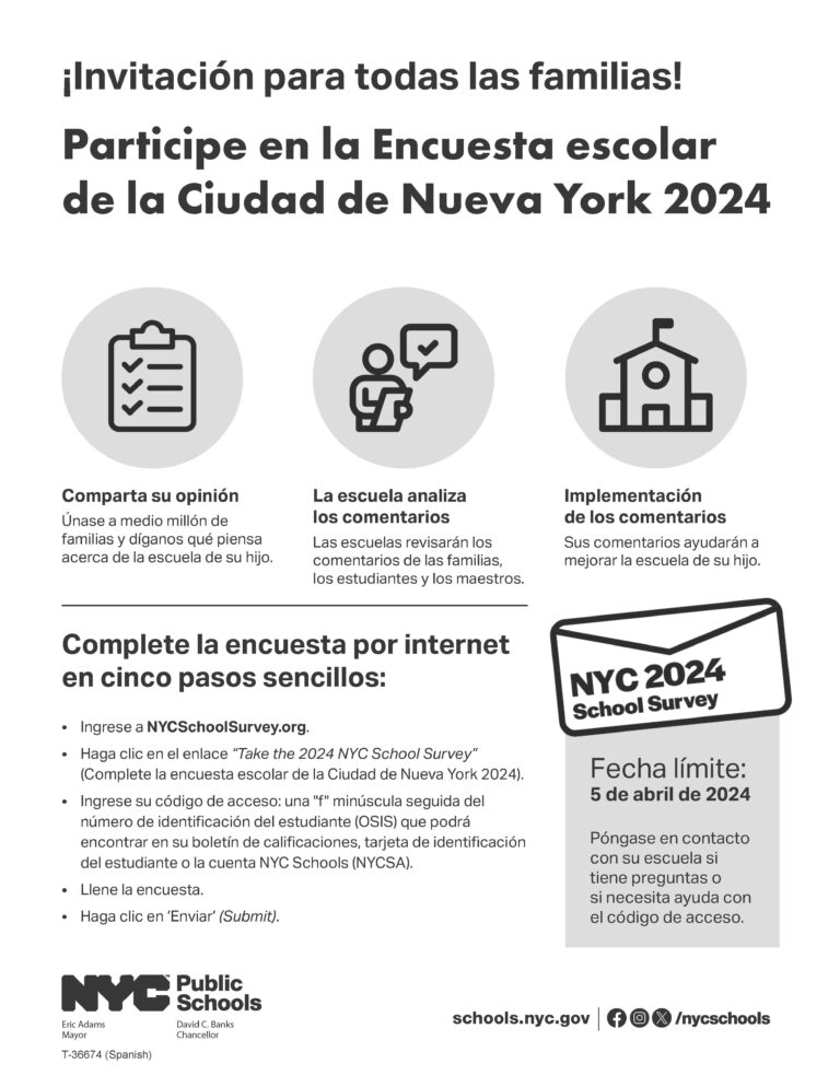 The 2024 NYC School Survey launched February 12 and will close on April 5, 2024.